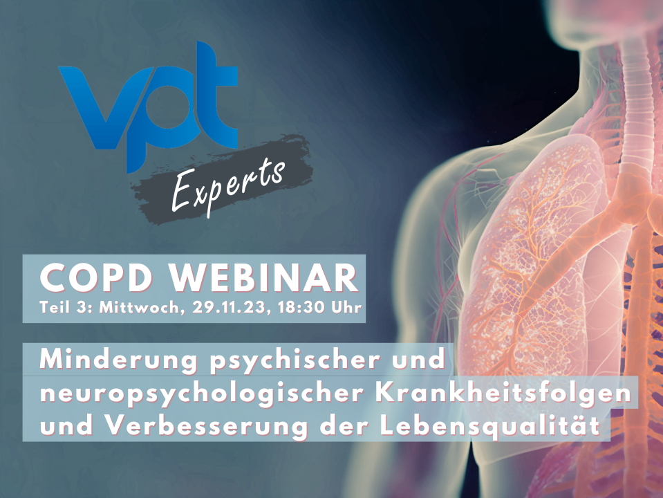 Eine COPD geht mit deutlichen körperlichen Beeinträchtigungen einher und hat gravierende Auswirkungen auf den Alltag und die Lebensqualität der Betroffenen. Vor dem Hintergrund der real existierenden Bedrohung durch die Erkrankung treten häufig auch „krankheitsbezogene Ängste“ auf, die sich nicht nur auf die Lebensqualität der Betroffenen auswirken, sondern auch den Umgang der Betroffenen mit der Erkrankung negativ beeinflussen können. Speziell Angst vor Atemnot und Angst vor körperlicher Aktivität können mit einer Vermeidung körperlicher Aktivität und einem allgemeinen Rückzug vom Alltagsleben einhergehen. Dies kann wiederum die Krankheitsbewältigung erschweren und zu weiteren psychophysischen Beeinträchtigungen führen. Auch eine gedrückte, depressive Stimmung kann sich negativ auf die Lebensqualität auswirken und das Krankheitsverhalten der Betroffenen beeinflussen. Ferner zeigen sich in der Realität auch neurokognitive Defizite, die sich ihrerseits teilhabelimitierend auswirken. Studien zu protektiven Faktoren und Ressourcen zeigen dagegen einen positiven Einfluss von spezifischen Bewältigungsstrategien auf die Lebensqualität der Betroffenen auf – und das unabhängig vom aktuellen Krankheitsstadium. Die körperliche Verfassung der Betroffenen ist somit nicht alleine maßgeblich für die Lebensqualität des einzelnen, sondern es spielen diverse psychische Faktoren sowie Faktoren der Krankheitsbewältigung eine wichtige Rolle.
